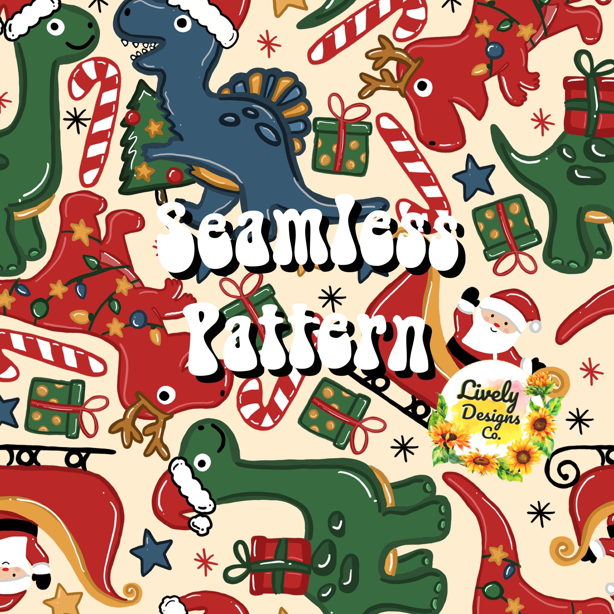 Seamless Pattern Dinosaur Christmas Etsy